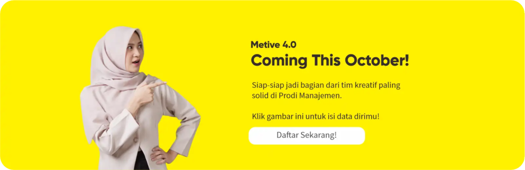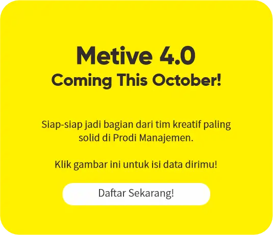 Metive bukan sekadar tempat belajar, tapi ruang untuk menciptakan karya, membangun jaringan, dan mengasah soft & hard skills yang relevan dengan dunia industri kreatif. Seluruh aktivitasnya berfokus pada penguatan branding dan engagement Prodi Manajemen melalui berbagai media dan event kampus.